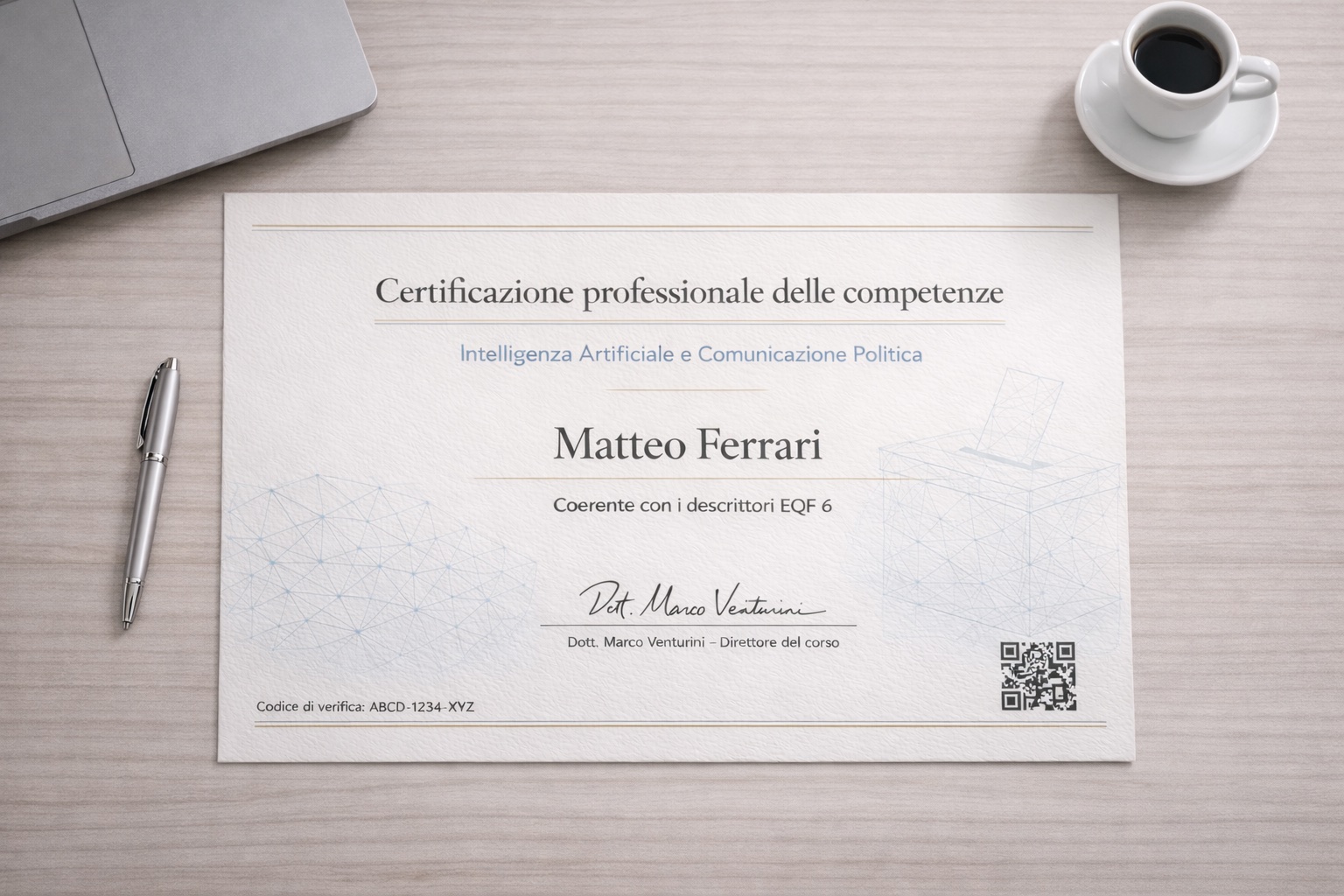 Il livello EQF 6 indica che le competenze certificate sono comparabili, per complessità e autonomia, a quelle tipicamente associate a una laurea triennale europea.
